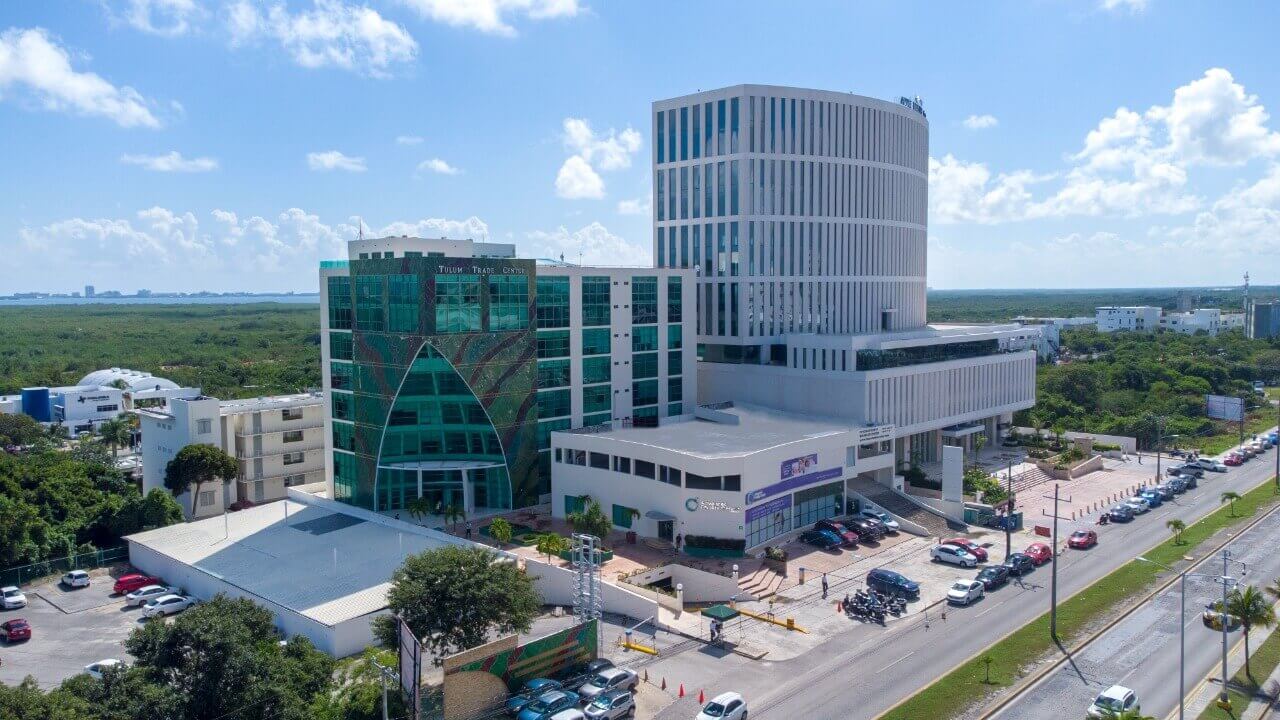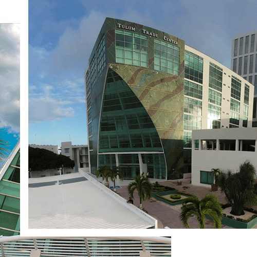 El Tulum Trade Center con su icónico diseño lo convierte en el edificio punto de referencia del distrito financiero de la ciudad de Cancún y la Riviera Maya, contando así con las más exclusivas vistas a la ciudad y el mar caribe.